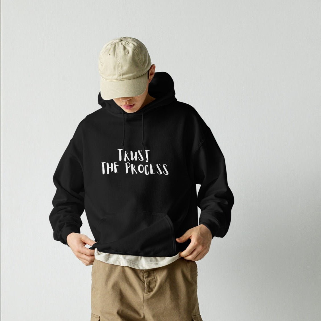 A person wearing a hoodie is smiling while looking directly at the camera. They are also wearing large dark sunglasses. The hoodie has a design featuring a stylized image and some text. The background appears to be an indoor setting with blurred lights.