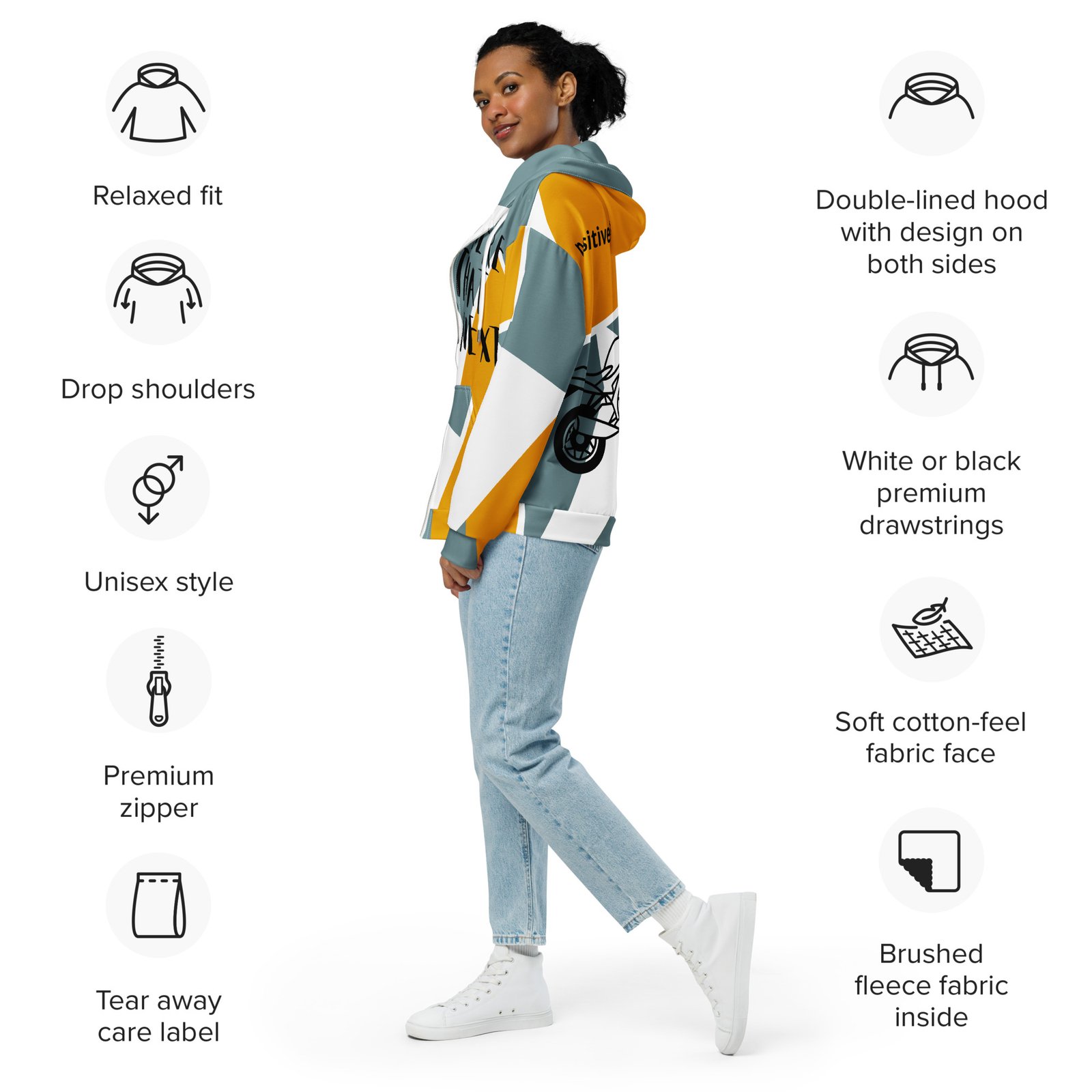 Meet the zip hoodie—a must-have for everyday wear. Crafted from 95% recycled polyester, it combines sustainability with style. Soft both inside and out, this unisex hoodie offers a relaxed fit with drop shoulders. Plus, it’s designed to last, keeping you cozy and fashionable for years to come.